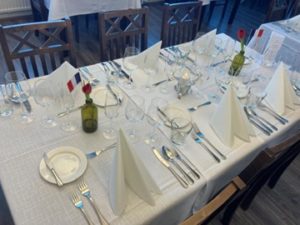 Torstaina tarjoiltiin menu, jota koko alkuviikko oli valmisteltu. Tarjoilun hoitivat matkailualan opiskelijat. Tekstin alta löytyy lopullinen menu. Varauksia lounaalle on tullut reilusti yli kaksikymmentä. Ravintola- ja catering- ja matkailualan opiskelijat pääsivät nauttimaan menusta lounaan jälkeen yhdessä vieraiden ja vastuuopettajien kanssa.
