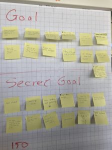Up: We all wrote two post-it notes; the other had a goal for these two weeks, and the other a secret goal to the two weeks.