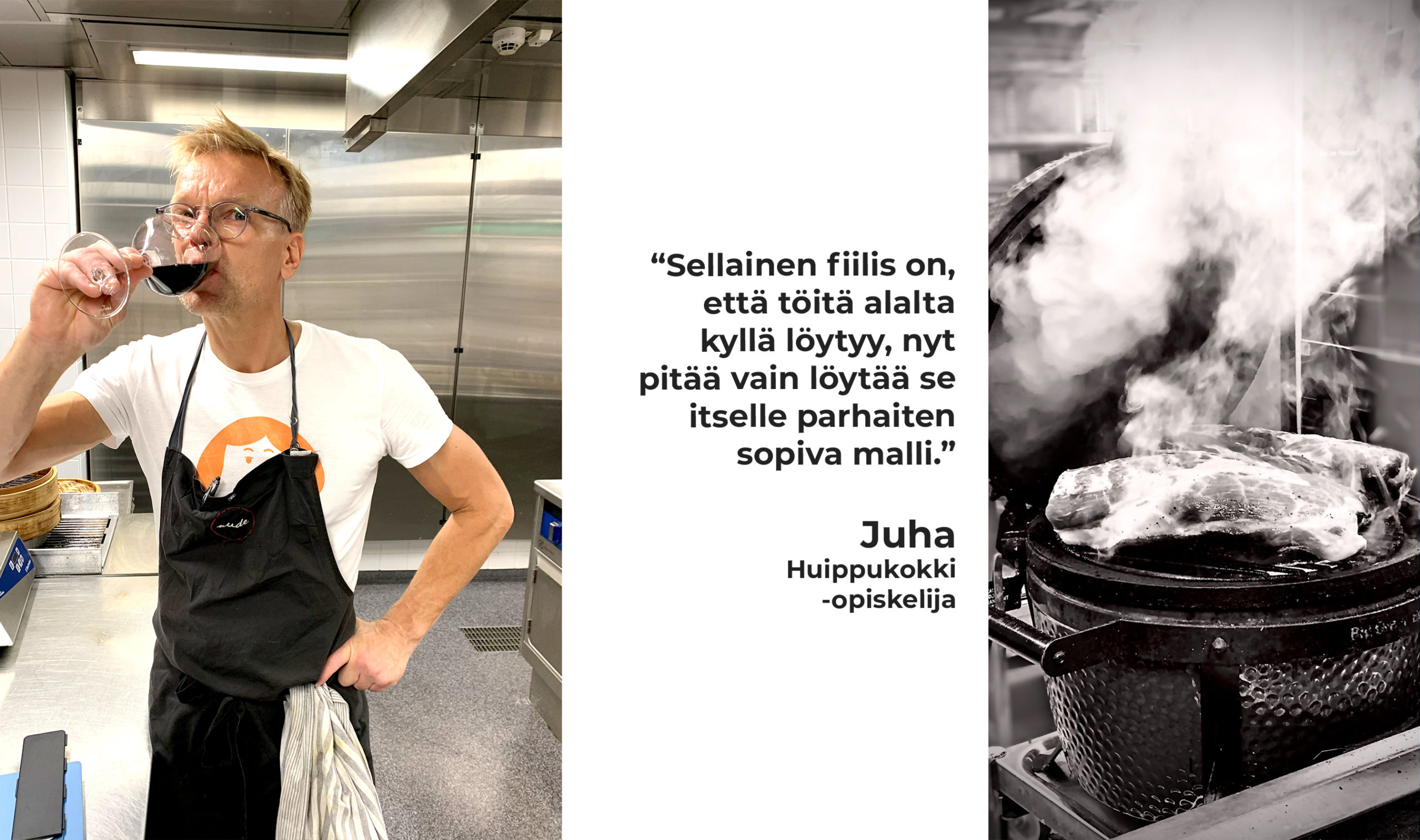 Juhan mielestä Huippukokki -koulutus on ainutlaatuinen tilaisuus opiskella kokiksi, mikäli ala kiinnostaa. Koulutus sopii mainiosti myös pidemmän työuran tehneelle alanvaihtajalle.