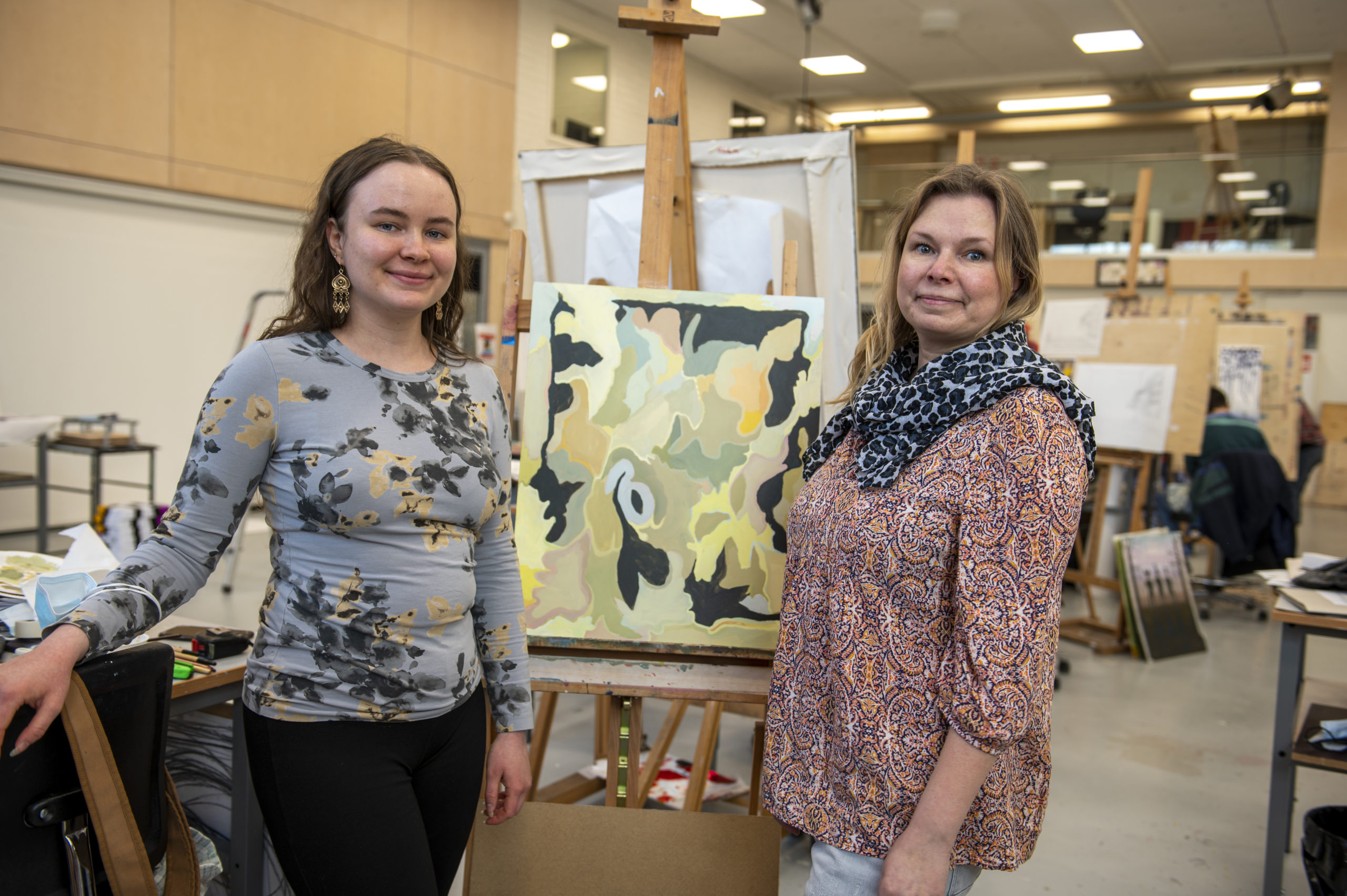 Molemmat ovat lopuksi yhtä mieltä siitä, että opintojen parhaita puolia on ollut myös saada oppia muilta opiskelijoilta. Välillä pidetään taidenäyttelyitä, joihin saa halutessaan laittaa omia töitään esille. Niissä näkee, miten joku tekee samalla materiaalilla ihan erilaista jälkeä. Silloin löytää uusia tekemisen malleja ja voi inspiroitua uudella tavalla. Ihan vain jo muiden työskentelyn seuraaminen ateljeessa on opettavaista.