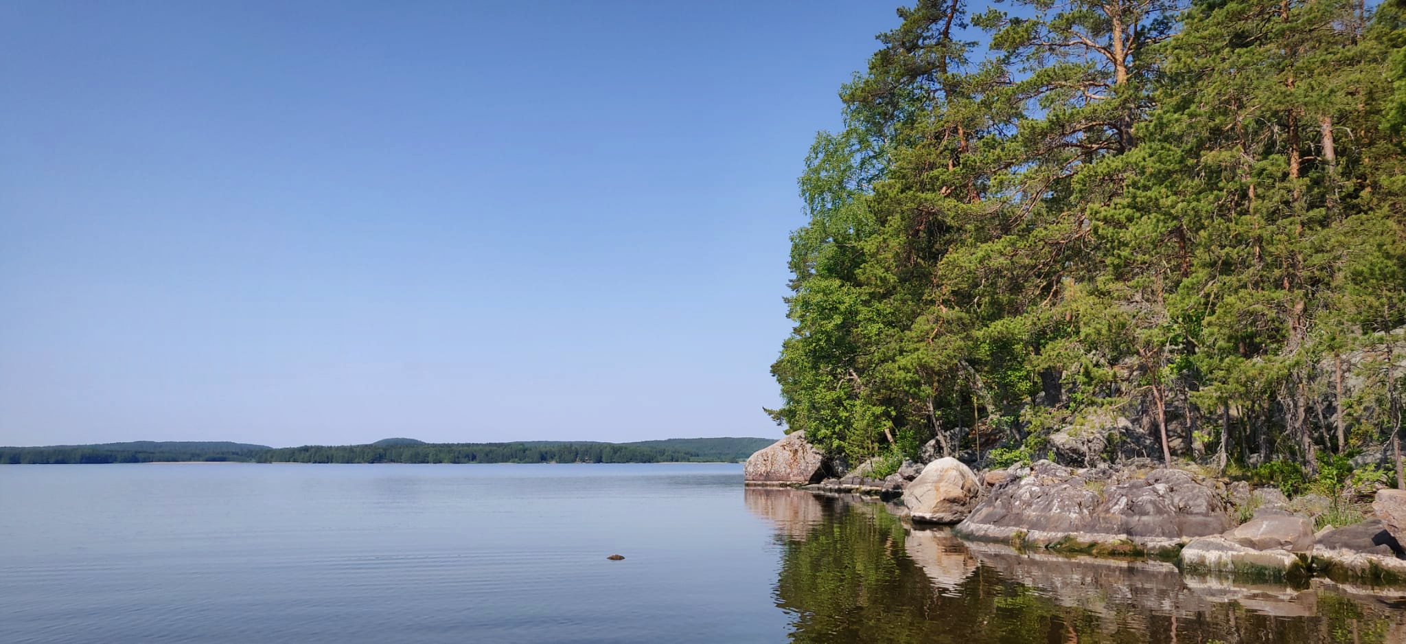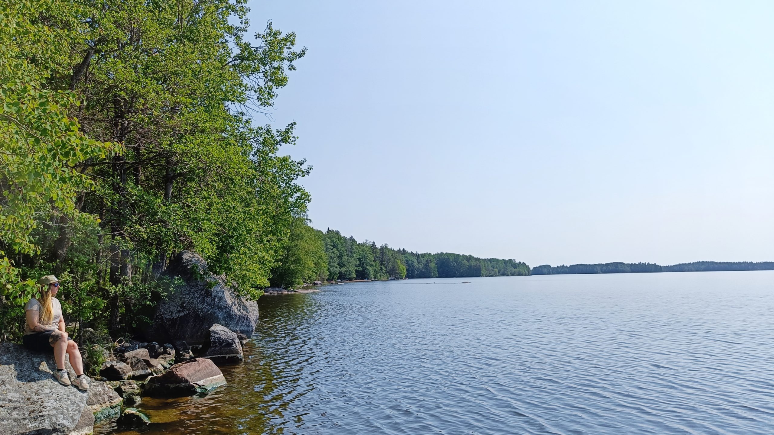 Jatkoimme kulkuamme pitkin reittiä, jonka kivinen ja kantoinen pohja piti huolta etenemisen rauhallisesta tahdista. Nyt ei ollut kiire mihinkään. Järven kesäinen tuoksu pyörähteli silloin tällöin metsän puolelle. Hiljaisuuden huminan rikkoi vain puissa kaikuva käpytikan nakutus.