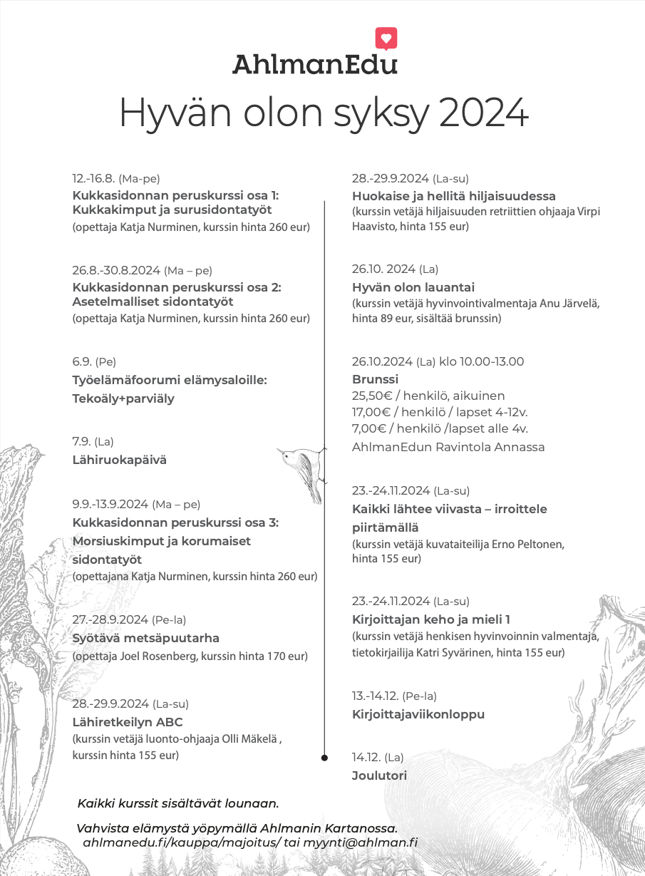 Tervetuloa mukaan AhlmanEdun ”Hyvän olon syksy 2024” kursseille!